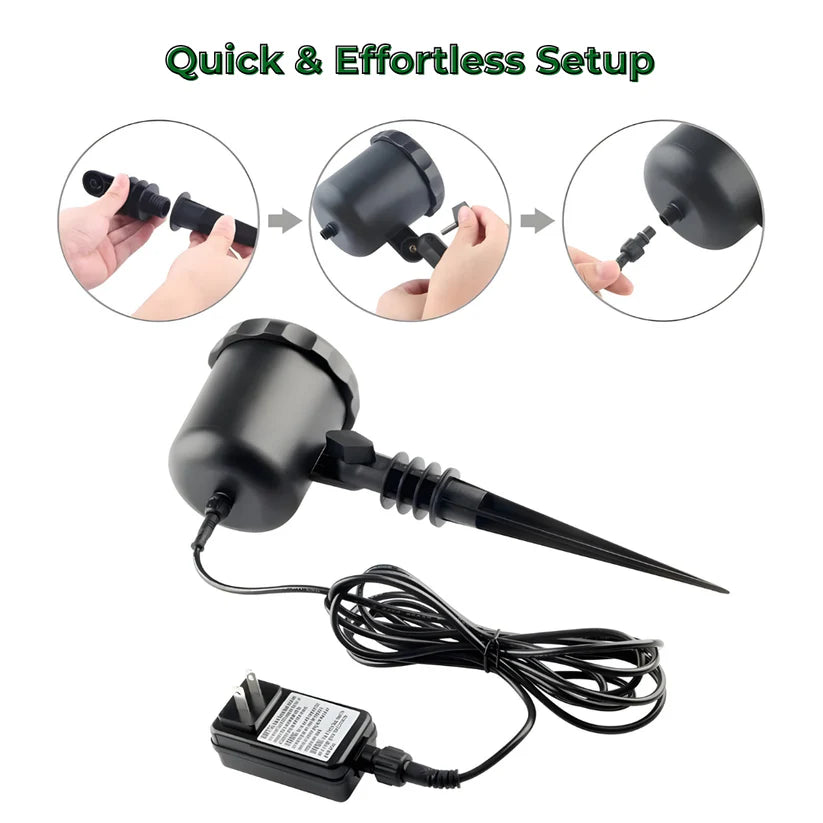 - True Plug-and-Play: stallation takes seconds. Simply plug it in, use the included ground stake or mounting plate, and aim—your display is ready.