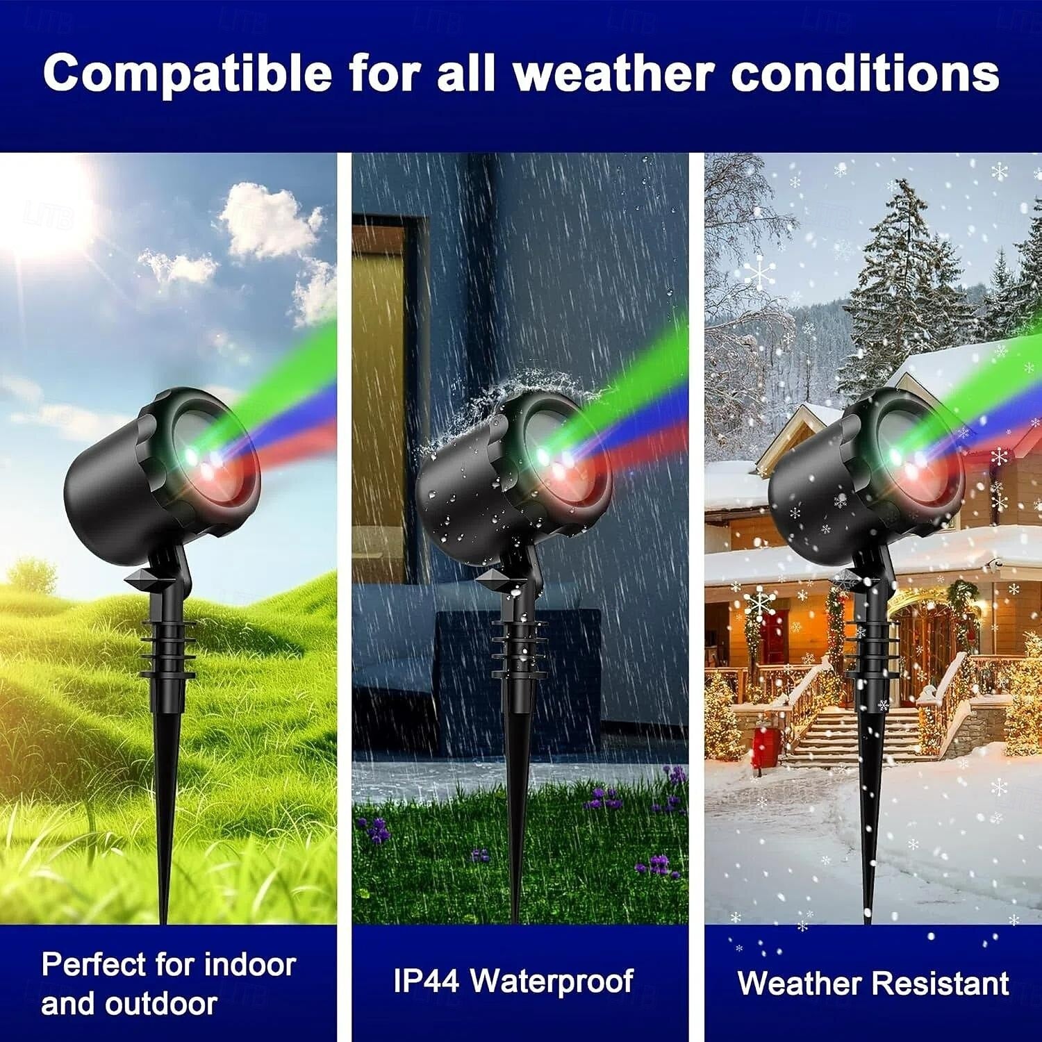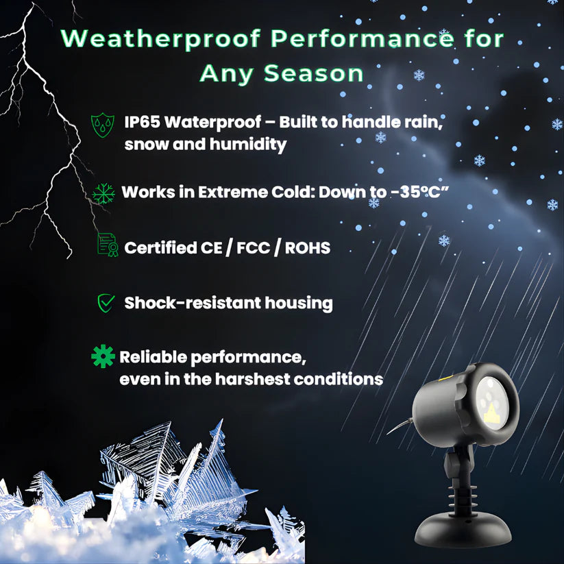 - Built for All Seasons: With a robust P65 waterproof rating, this projector withstands rain, snow, and wind, ensuring reliable magic all season long.
