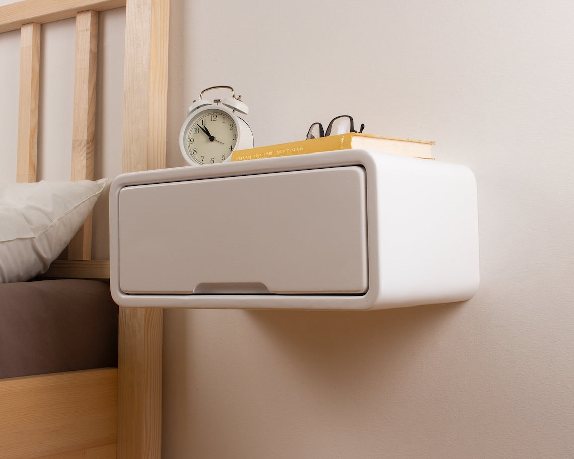 ➜ Floating design: This nightstand effortlessly hangs on your wall, creating a clean and stylish look. It saves valuable floor space and gives your room a spacious feel.