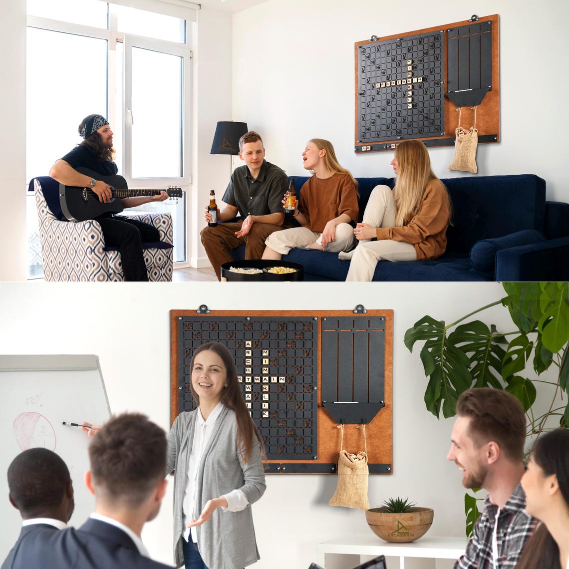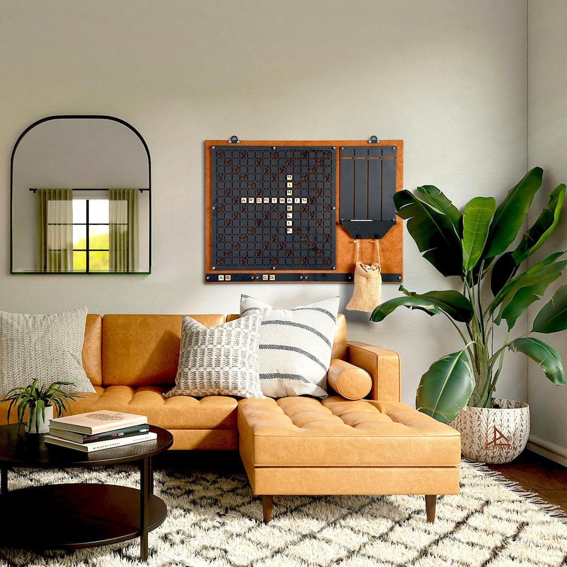 Turn your wall into a fun and interactive space with this modern wall mounted scrabble game perfect for home , office or game room decor!